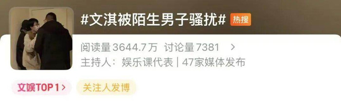 今天一早,#文淇被陌生男子骚扰#冲上热搜第一,引发网友热议。